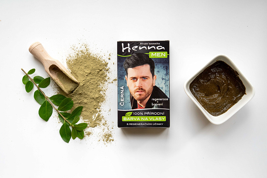 Henna revives natural hair color and covers gray hair.
